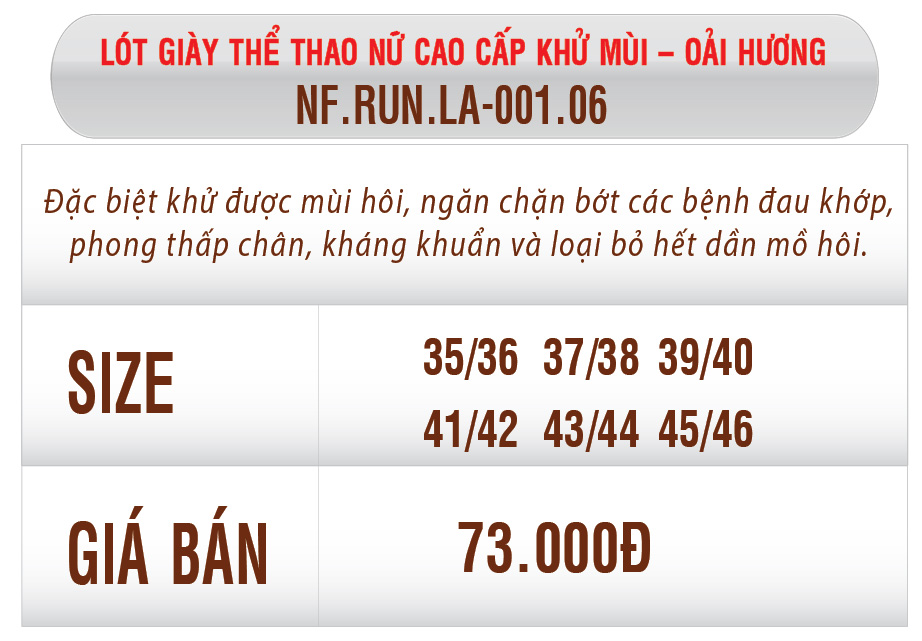 LÓT GIÀY THỂ THAO NỮ KHỬ MÙI - OẢI HƯƠNG